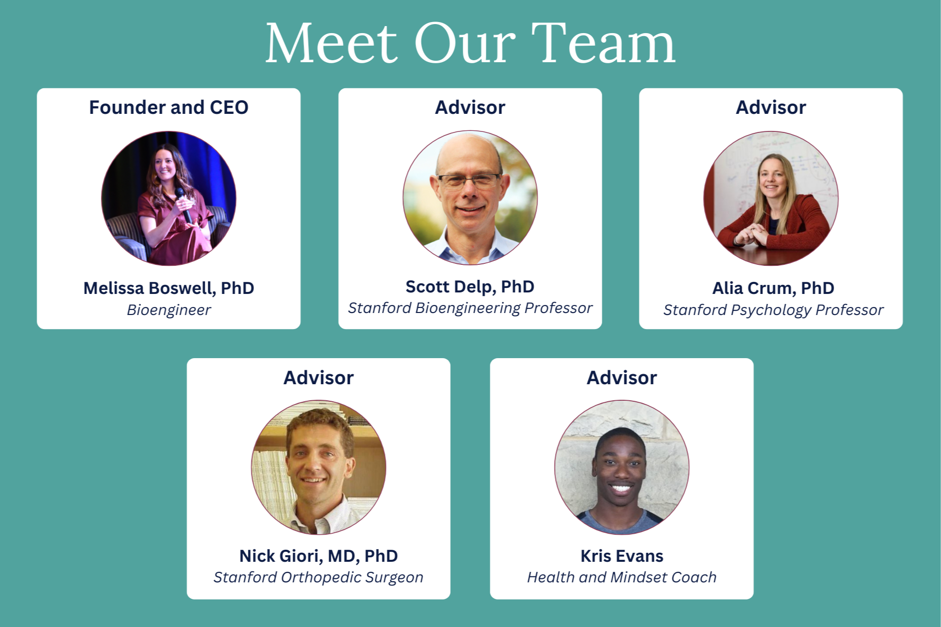 Learn from top bioengineering, psychology, and orthopedic surgery experts at Stanford, alongside health and mindset coaches. Our program is grounded in research and designed to create real change.